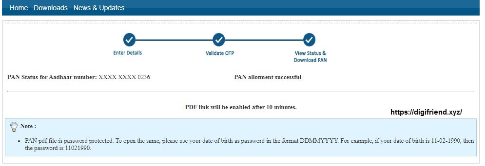 Successfully Submit Details and Waiting for 10 Min of Download online Pan Card