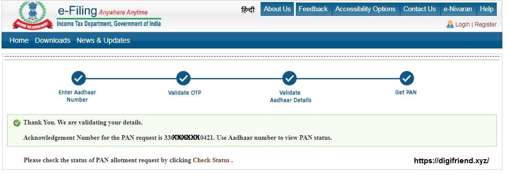 How To Get New PAN from Adhar Card Online and Check Status / Download PAN ?