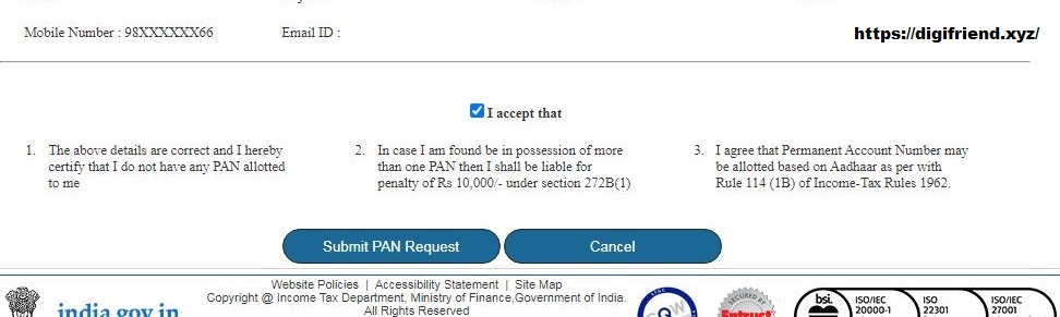 if All Details its Ok You Can Accept and Submit PAN Request. then After Receive Message Request Nomber