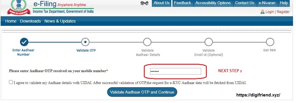 Enter OTP Receive of Aadhar Nomber Link Mobile and Enter for Next Step