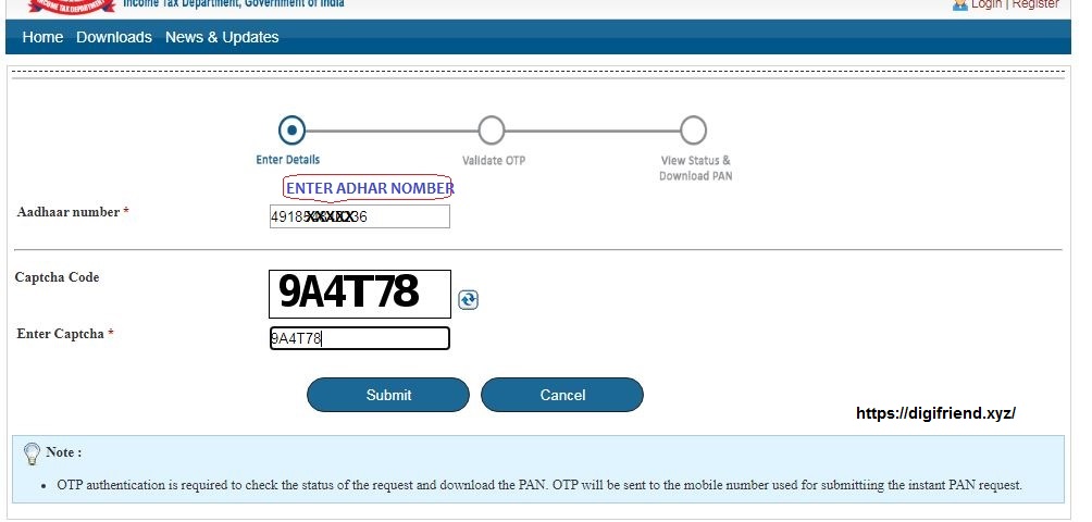 Download Pan Card is Enter Adhar Nomber and Captha